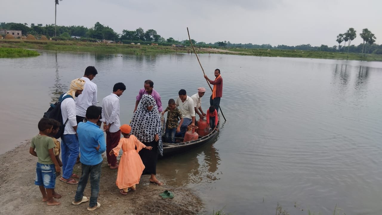कटिहार जिला के हसनगंज प्रखंड से कोढ़ा प्रखंड को जोड़ने वाली सड़क पर जल स्तर के बढ़ने से लोग एक बार फिर 20 रुपया किराया देकर नाव से आवाजाही करने पर विवश हैं। लगातार मूसलाधार बारिश से चांपी भसना नदी का जल स्तर बढ़ गया है। इससे सात वर्ष पूर्व बाढ से ध्वस्त हो चुकी सड़क पर पानी आ जाने से लोगों को नाव का सहारा लेना पर रहा है। जल स्तर के बढ़ने से खासकर राजवाड़ा पंचायत,रौतारा पंचायत,चांपी,बियारपुर आदि क्षेत्र के खासकर एलपीजी गैस उपभोक्ता को काफी कठिनाइयों का सामना करना पर रहा है। अक्सर इस क्षेत्र के लोगों का गैस कनेक्शन हसनगंज एचपी गैस एजेंसी में है। और लोगों को अपनी बाइक को सड़क पर ही छोड़कर जान जोखिम में डालकर एस्ट्रा 20 रुपया नाव का किराया देकर गैस सिलेंडर के लिए हसनगंज जाना पड़ रहा है। वहीं बढ़े जलस्तर को लेकर आवागमन को और सुलभ बनाने को लेकर स्थानीय लोगों द्वारा चचरी पुल का निर्माण किया जा रहा है। बता दें की वर्ष 2017 की बाढ़ मे हो चुकी ध्वस्त सड़क की मरम्मत नहीं होने की वजह से लोगों को प्रत्येक वर्ष बरसात में इस तरह की समस्याओं से सामना करना पड़ता है।