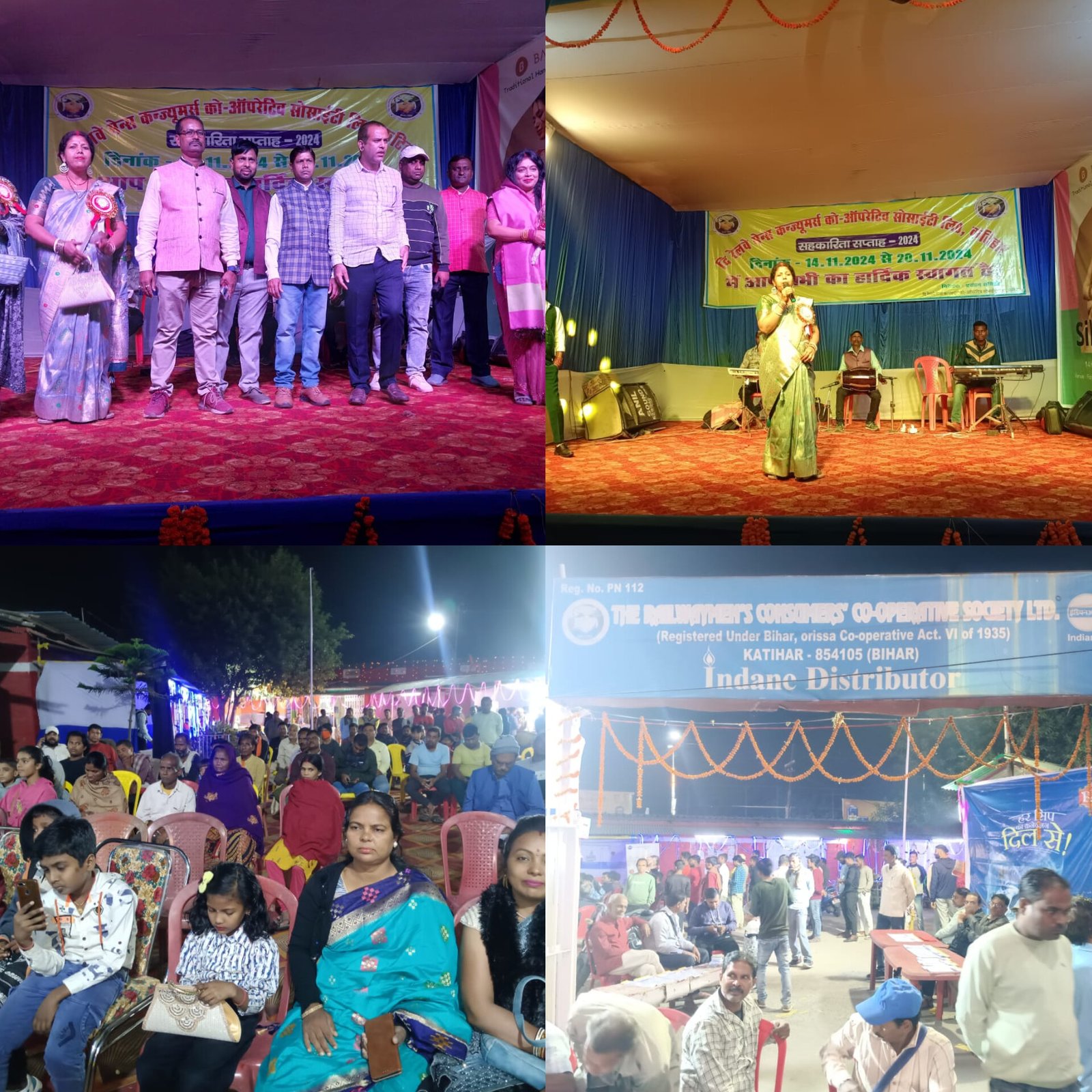 दि रेलवे मेन्स कंज्यूमर्स कापरेटिव सोसायटी लिमिटेड पु सी रेलवे कटिहार का 71 वा सहकारिता सप्ताह का समापन बुधवार को विधिवत हो गया। इस संबंध में सचिव रेलवे कॉपरेटिव प्रेमशंकर ने बताया कि इस वार्षिक महोत्सव मेला 14 नवंबर को शुरू हुआ था जो बुधवार 20 नवंबर तक रेलवे कॉपरेटिव परिसर में चला। जिसमें मुख्य आकर्षक विशेष रूप से भागलपुरी सिल्क का स्टॉल और इलेक्ट्रॉनिक स्कूटी का स्टॉल सहित लोगों के लिए अलग अलग तरह के खानपान आदि के स्टॉल थे। आयोजित महोत्सव में मेला में मार्केट से कम मुल्य में सामान उपलब्ध था। जिसमें लोगों ने लॉटरी और सामनों की काफी खरीददारी किया ।