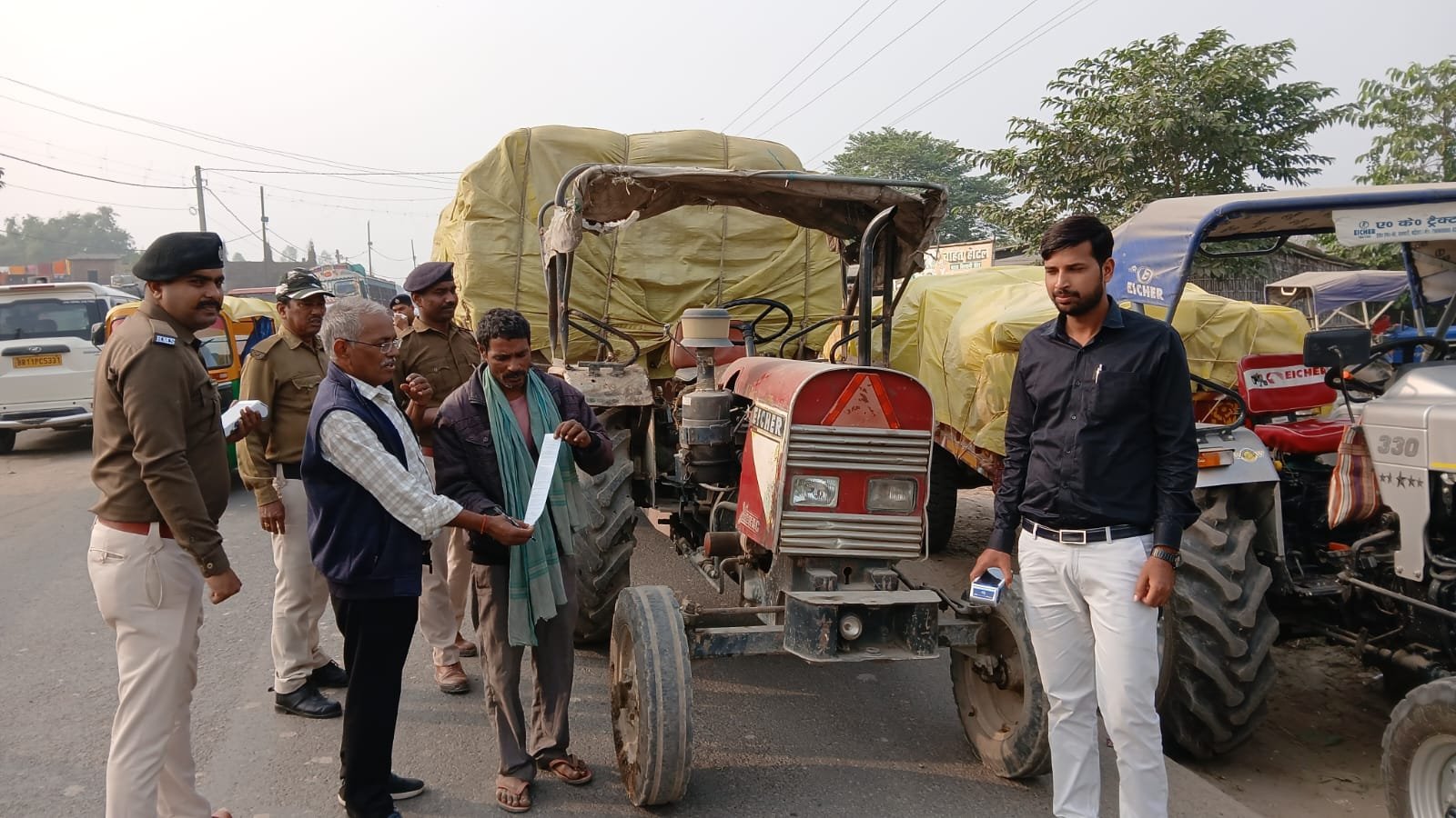 कटिहार जिले के प्राणपुर थाना क्षेत्र के अंतर्गत लाभा में बने चेक पोस्ट के समीप डीटीओ की अगुवाई में संघन वाहन चेकिंग अभियान चलाया गया इस सघन वाहन चेकिंग अभियान के तहत बंगाल की तरफ से ट्रैक्टर पर लोड चावल की गाड़ी आ रही थी ओवरलोडेड आने वाली ट्रैक्टर को रोक कर चलन काटी गई जिसका मूल्य 16000, 500 की चालन थीं। वही जानकारी देते हुए डीटीओ श्री बालमुकुंद प्रसाद ने बताया कि जिला प्रशासन के आदेशानुसार आज सोमवार को प्राणपुर थाना क्षेत्र के अंतर्गत लाभा पुल में बने चेक पोस्ट में सघन वाहन चेकिंग अभियान चलाया गया। इस वाहन चेकिंग के दौरान बंगाल के तरफ से ट्रैक्टर चावल ओवरलोडेड थी जो बंगाल की तरफ से आ रही थी जिसमें ओवरलोडेड चावल थी जिसकी गाड़ी को रोक कर कागजात जांच कर उसकी चलन काटी गई।