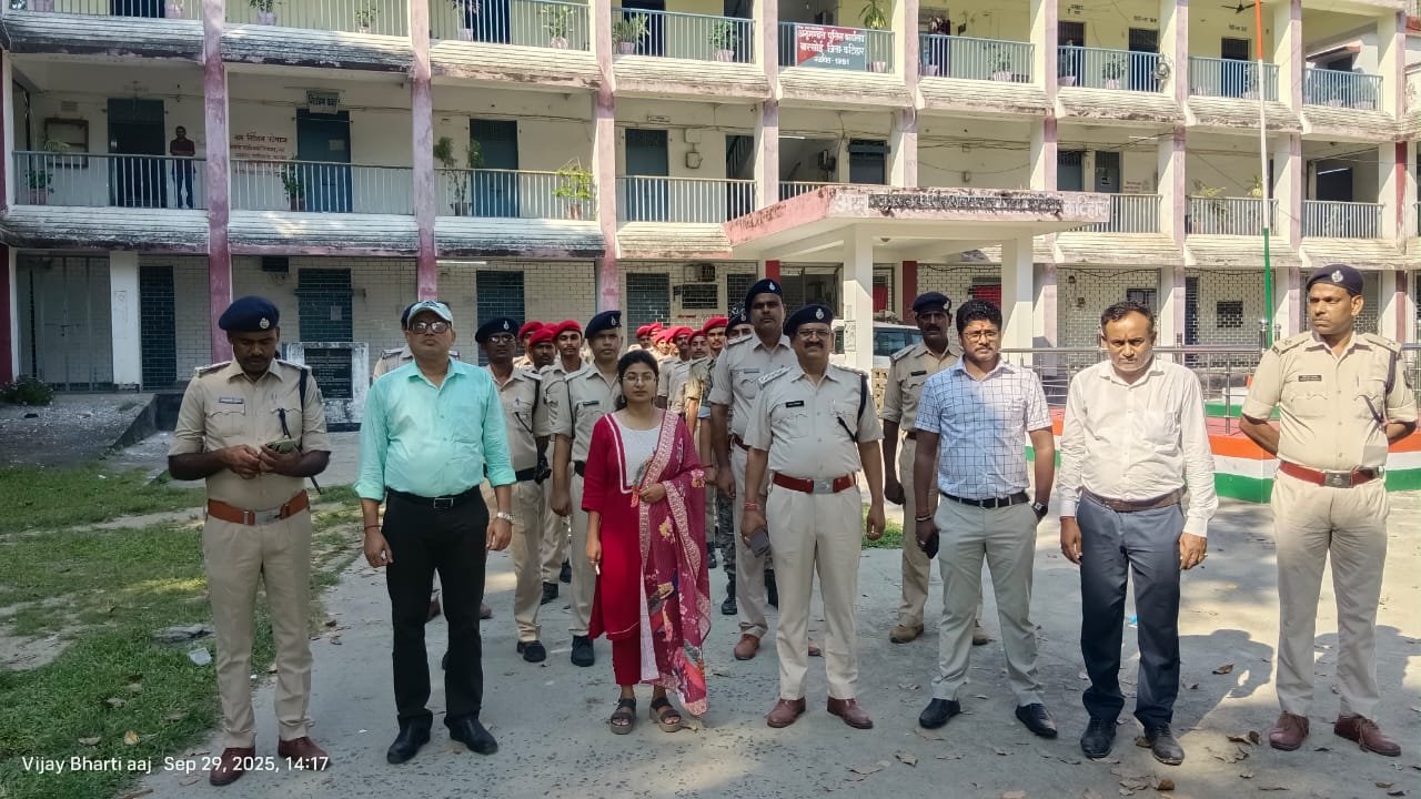 दुर्गा पूजा एवं चुनाव को लेकर अनुमंडल मुख्यालय से तेज तर्रार ,ईमानदार,एसडीम आकांक्षा आनंद एवं डीएसपी अजय कुमार के नेतृत्व में फ्लैग मार्च निकाला, एसडीएम आकांक्षा आनंद ने आज डिप्टी ब्यूरो चीफ विजय भारती से बातचीत करते हुए कहा विधि व्यवस्था मामले में अधिकारियों एवं पुलिस कर्मियों को सख्त निर्देश लापरवाही एवं कोताही बर्दाश्त नहीं की जाएगी। अपराधियों आसामाजिक तत्वों को अंतिम चेतावनी दी सुधर जाओ वरना कार्रवाई के लिए तैयार रहें ।अफवाह से बचने की सलाह दी । बंगाल एवं बिहार सीमावर्ती क्षेत्र विशेष चौकस रहने को कहा चुनाव को लेकर भी सतर्क रहने निर्देश दुर्गा पूजा पंडाल पुलिस प्रशासन की पहली नजर रहेगी। शांति सद्भाव से त्योहार मनाने की अपील अनुमंडल प्रशासन द्वारा कंट्रोल रूम भी बनाए गए। किसी भी परिस्थिति में अनुमंडल प्रशासन तैयार वाहन चेकिंग अभियान के साथ गस्ती भी तेज कर दी गई है। विधि व्यवस्था मामले में अनुमंडल प्रशासन नजर डीजे पूरी तरह से प्रतिबंध रहेगा। लोगों का सहयोग जरूरी है, ।डीएसपी अजय कुमार ने सभी थाना अध्यक्ष को को निर्देश दिए कहा मामले में लापरवाही बर्दाश्त नहीं की जाएगी। चौक चौराहों पर पुलिस बल की तैनाती कर दी गई ।मोटरसाइकिल से गस्ती तेज सदा लिवास मैं भी पुलिस तैनात रहेगी। पुलिस प्रशासन पूरी तरह मुस्तैद है। उसके बावजूद भी अगर किसी को कहीं अप्रिय की सूचना मिलती तुरंत प्रशासन को सूचित करें ।कार्रवाई की जा सके,चप्पा चप्पा पुलिस बल की नजर , इस आशा को मुख्य रूप से प्रखंड विकास पदाधिकारी हरि ओम शरण, अंचल पदाधिकारी श्यामसुंदर साह, नगर कार्यपालक पदाधिकारी रजनीश कुमार, पुलिस अंचल निरीक्षक तरुण कुमार तरुणेश, प्रखंड के सभी पदाधिकारी एवं पुलिस कर्मियों उपस्थित।