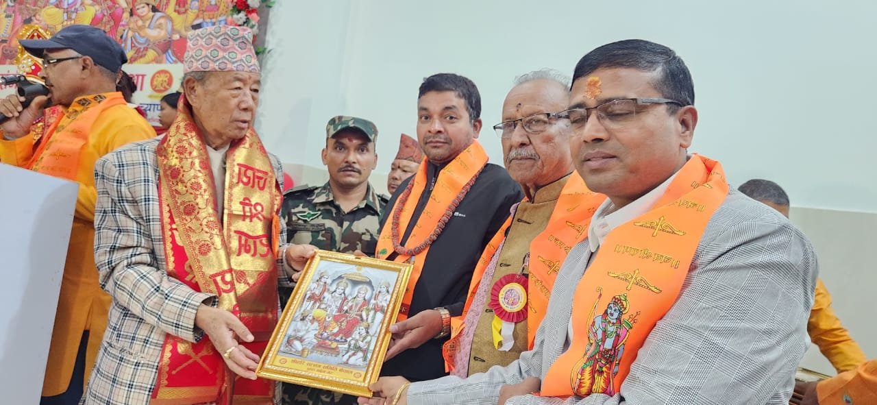 जोगबनी सीमा से सटे पड़ोसी देश नेपाल में भी पत्रकारिता के साथ धार्मिक सामाजिक कार्य में अग्रणी भूमिका निभाते रहे भारत नेपाल सामाजिक सांस्कृतिक मंच के अध्यक्ष व श्री हरि सत्संग समिति के प्रदेश सलाहकार राजेश कुमार शर्मा को सत्यनारायण मंदिर के धर्मशाला में नो दिनों तक चले श्री हरि सत्संग समिति के व्यस्कार के श्री राम कथा के समापन के अवसर पर श्री शर्मा को प्रदेश प्रमुख (राज्यपाल)परशुराम खापुंग के द्वारा बेहतर सामाजिक समन्वय को लेकर सम्मानित किया गया। इस दौरान प्रदेश प्रमुख श्री खापुंग ने कहा कि आज के समय में व पूर्व के समय में में खुद काफी परिवर्तन महसूस करता हूं आज इंसान धर्म के जगह अन्य विकृति के तरफ उन्मुख हो रहे हैं आज भाई को भाई से मेल नहीं है चाचा भतीजे के संबंध में कटुता है राम कथा के श्रवण ही नहीं जीवन में भी लागू अगर मनुष्य करे तो कई प्रकार के कष्ट तनाव से मुक्ति मिलेगी । वही ब्यास कथाकार सुश्री शर्मिला किशोरी जी के संगीतमय कथा ने लोगों को मंत्रमुग्ध कर दिया वही इस अवसर पर राष्ट्रीय अध्यक्ष भीखम चंद सरल, महेश साह स्वर्णकार, बीरेंद्र बुढाथोकी, अरविंद साह, शिवरतन जोशी सहित हजारों श्रद्धालु उपस्थित थे तो कार्यक्रम का संचालन विद्यानंद मांझी ने किया।