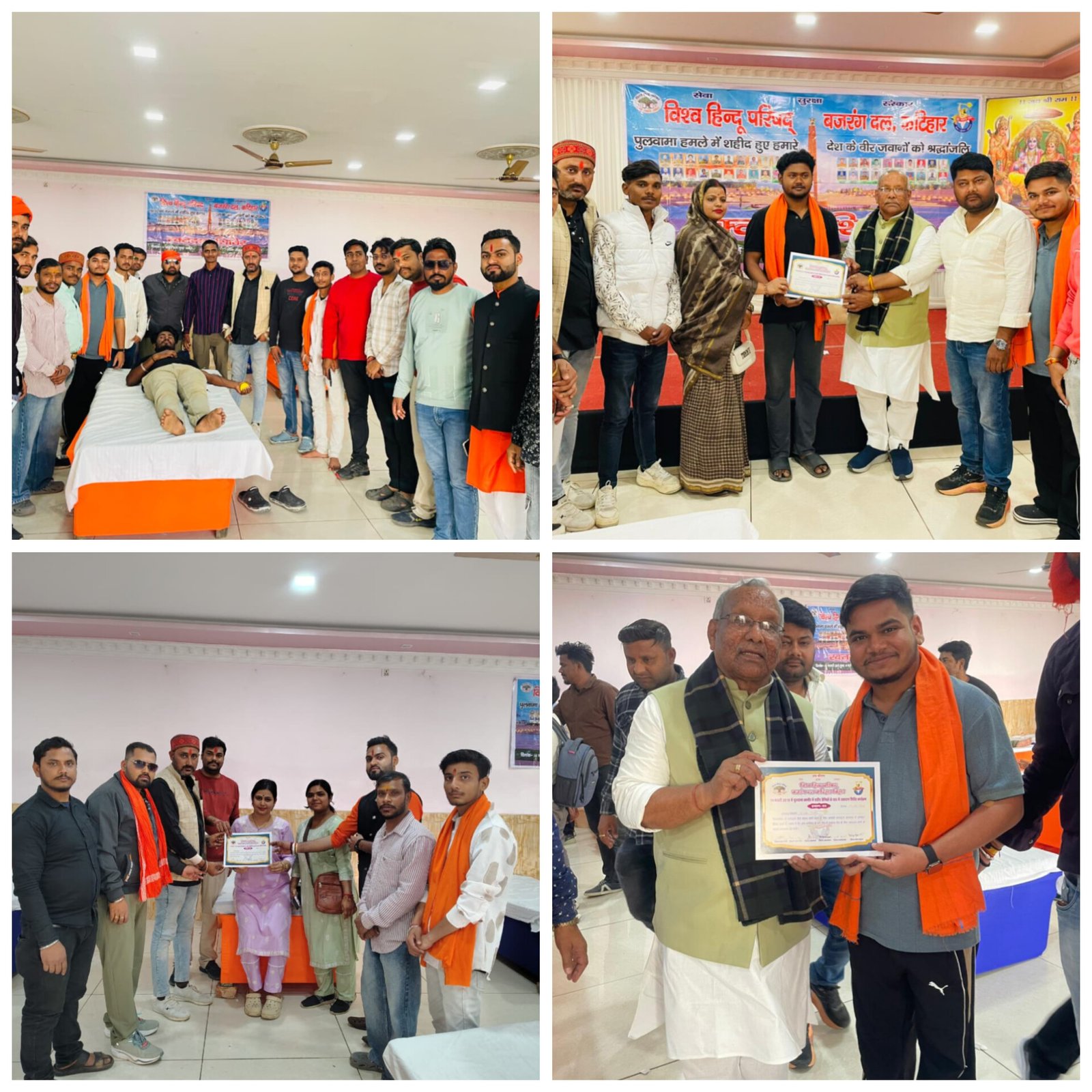 पुलवामा हमले में देश की रक्षा करते हुए अपने प्राणों की आहुति देने वाले वीर जवानों की शहादत को नमन करने के लिए, हर वर्ष की भांति इस वर्ष भी 14 फरवरी को विश्व हिंदू परिषद (विहिप) और बजरंग दल द्वारा एक भव्य रक्तदान शिविर का आयोजन किया गया। स्थानीय पटेल चौक स्थित सीताराम गार्डन में आयोजित इस ‘मेगा रक्तदान शिविर’ में युवाओं और स्थानीय नागरिकों ने बढ़-चढ़कर हिस्सा लिया।