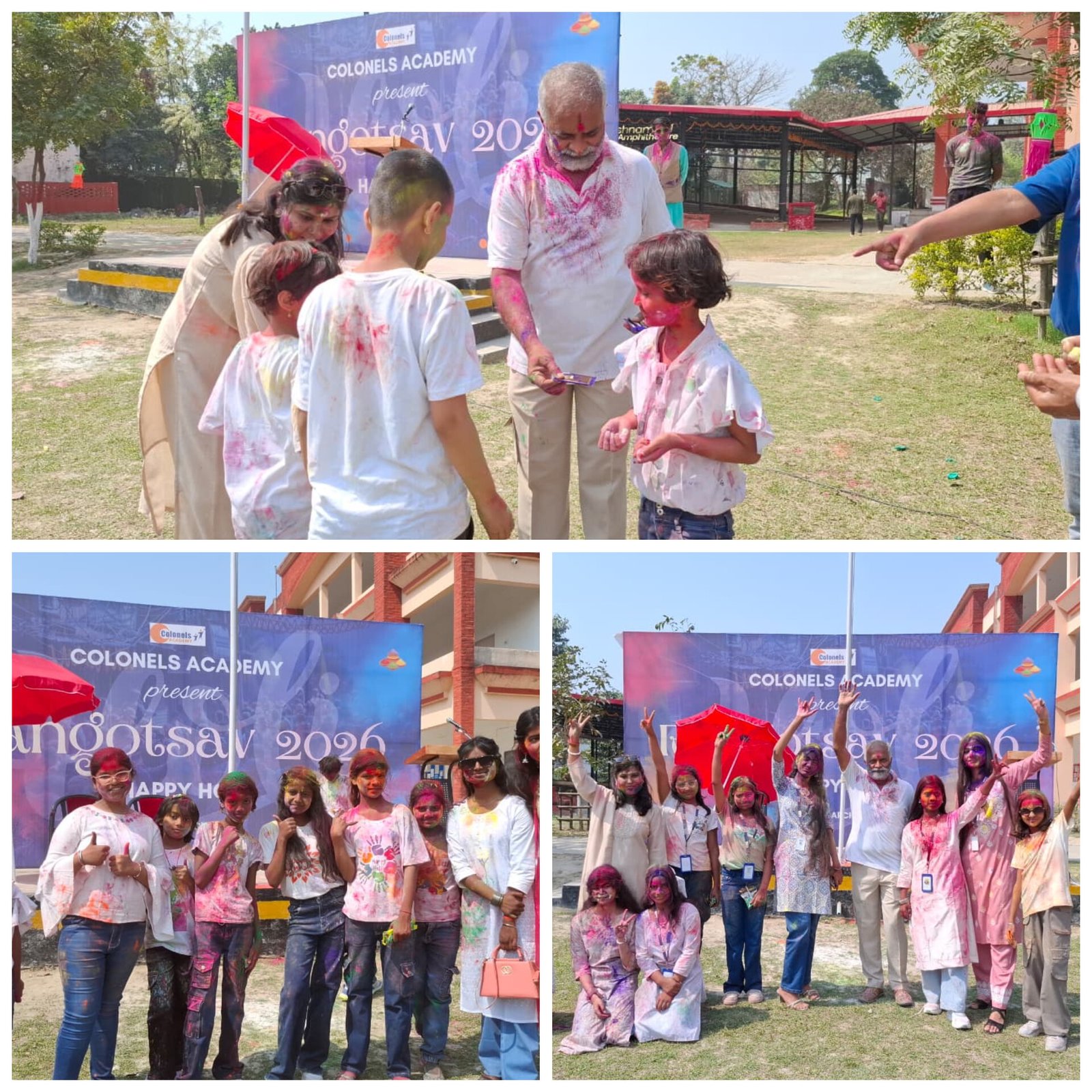 विद्यालय में सुरक्षित एवं पर्यावरण-अनुकूल होली मनाने का विशेष ध्यान रखा गया। विद्यार्थियों ने एक-दूसरे को अबीर-गुलाल लगाकर होली की शुभकामनाएं दीं। कर्नल्स एकेडमी विद्यालय में होली उत्सव के उपलक्ष्य में रंगारंग मेले एवं विभिन्न खेलों का भव्य आयोजन किया गया। विद्यालय परिसर को आकर्षक सजावट और रंग-बिरंगे स्टॉलों से सुसज्जित किया गया, जिससे पूरे वातावरण में उत्सव का उल्लास दिखाई दे रहा था। विद्यार्थियों के लिए अनेक मनोरंजक खेलों की व्यवस्था की गई, जैसे – रिंग फेंको खेल, गुब्बारा फोड़ो, लकी ड्रा, म्यूजिकल चेयर, टिक – टैक – टो, रसी खींच आदि। बच्चों ने उत्साहपूर्वक भाग लिया और अपनी प्रतिभा का प्रदर्शन किया। प्रत्येक खेल के विजेताओं को आकर्षक पुरस्कार प्रदान किए गए। इसके अतिरिक्त, स्वादिष्ट व्यंजनों के स्टॉल भी लगाए गए, जहाँ विद्यार्थियों एवं अभिभावकों ने आनंद लिया। शिक्षकों ने भी बच्चों के साथ मिलकर खेलों में भाग लिया, जिससे आपसी स्नेह और सौहार्द का वातावरण और प्रगाढ़ हुआ। छोटे बच्चों के लिए विशेष रूप से बिना रंगों के मजेदार खेल रखे गए, जिससे सभी सुरक्षित वातावरण में आनंद ले सकें।